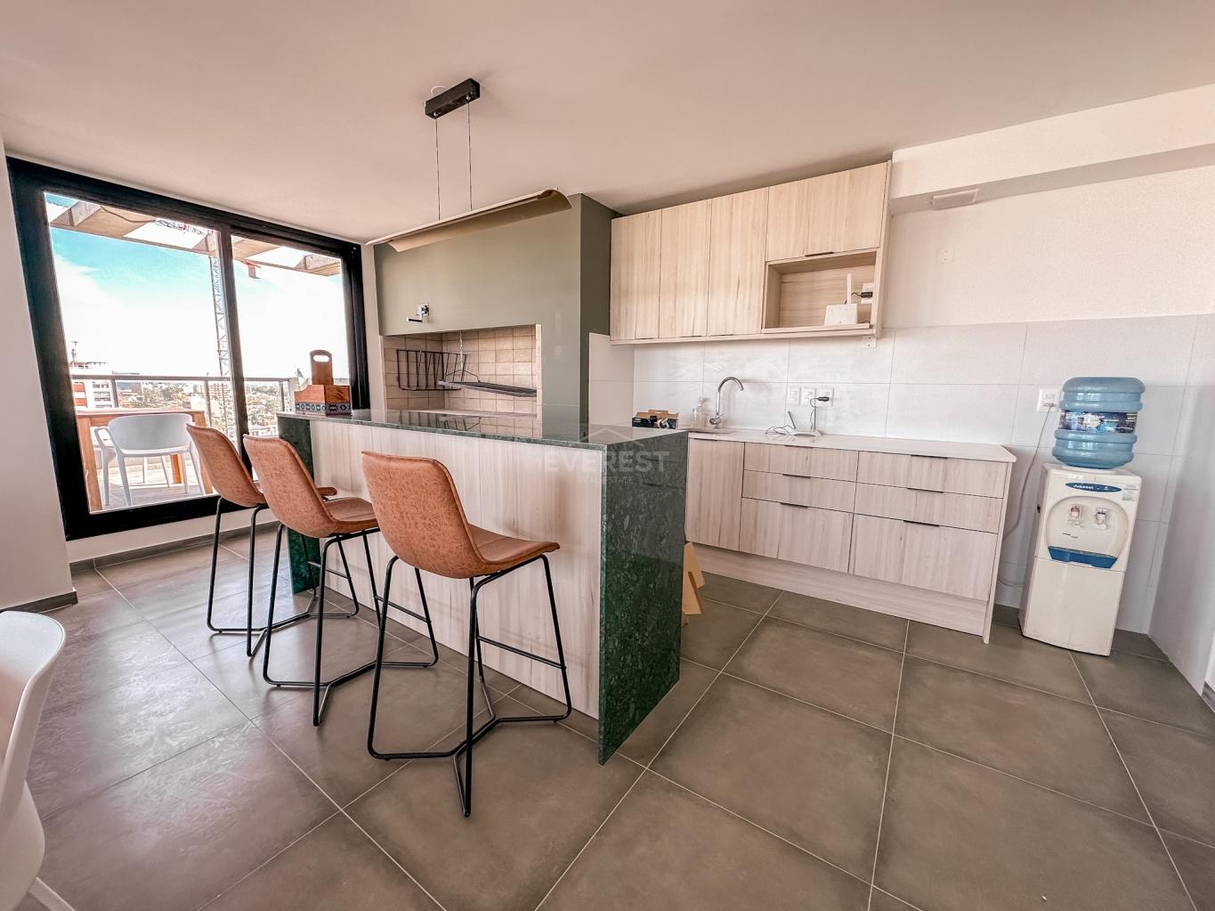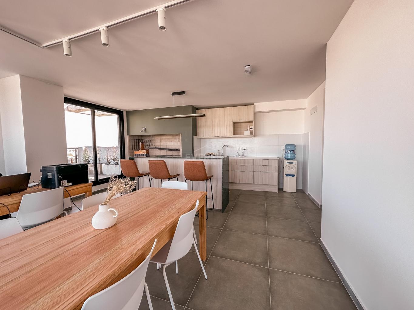 Living comedor con cocina integrada.