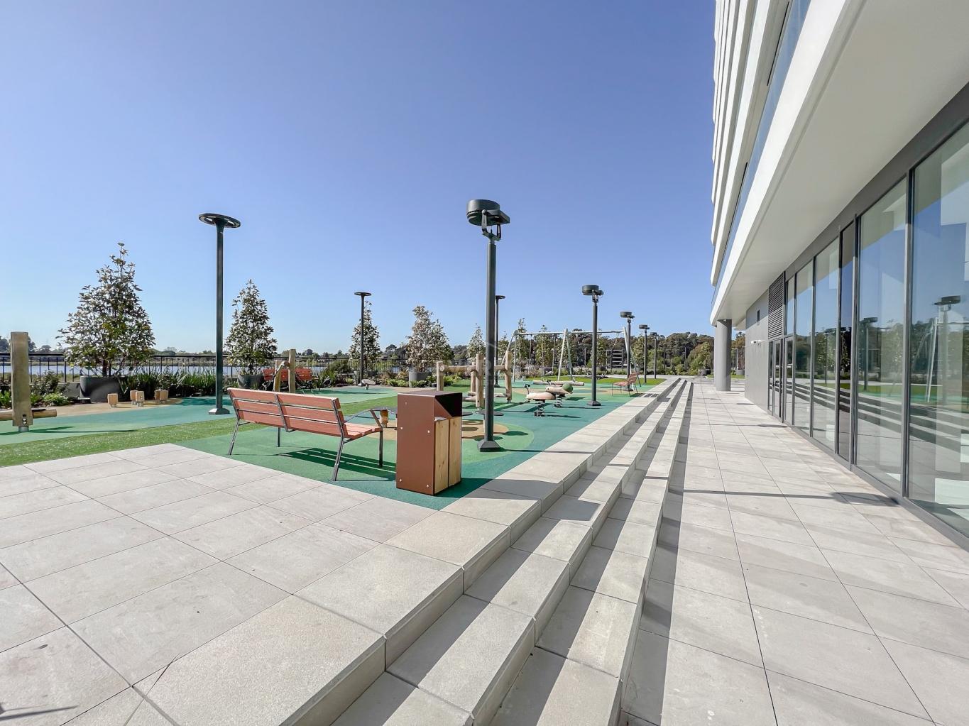 Un edificio exclusivo frente al Lago Calcagno, con vistas inmejorables y amenities de primer nivel.
