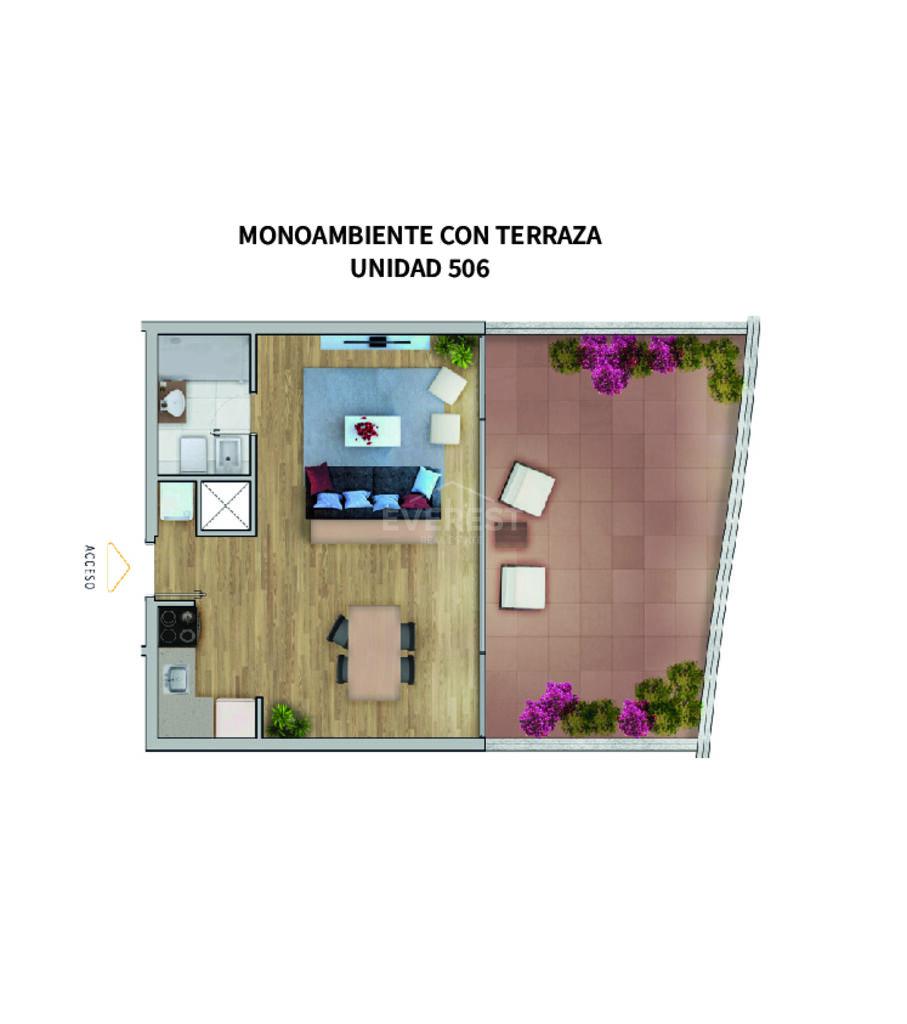 Apartamento tipo lofts en quinto piso. Unidades 506Cocina integrada, con placares incluidos.